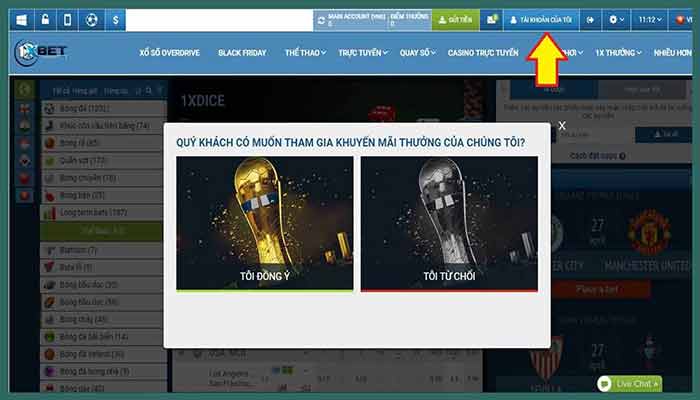 Khi đăng ký thành công, bạn có thể vào kiểm tra tài khoản của mình bằng cách nhấn vào TÀI KHOẢN CỦA TÔI để kiểm tra thông tin của mình, nếu đầy đủ và chính xác bạn chỉ cần tham gia cá cược tại 1xBet là được.