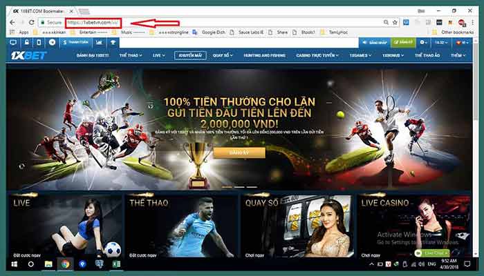 Đầu tiên, bạn cần truy cập vào đúng link uy tín của website nhà cái 1xBet và truy cập vào. Khi truy cập vào trang chủ thành công, bạn nhấn chuột vào chữ “ĐĂNG KÝ” màu xanh trên góc phải màn hình để bắt đầu đăng ký.