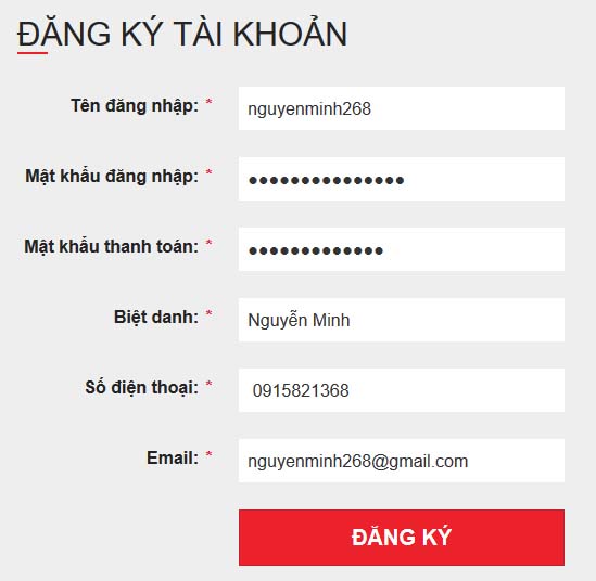 Mật khẩu thanh toán: Là mật khẩu dùng khi bạn rút tiền, mật khẩu này không được giống với mật khẩu đăng nhập.