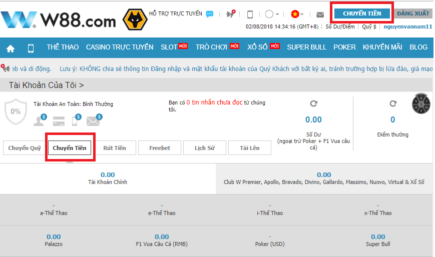 Bước 3: Khai báo thông tin chuyển tiền tại website W88.